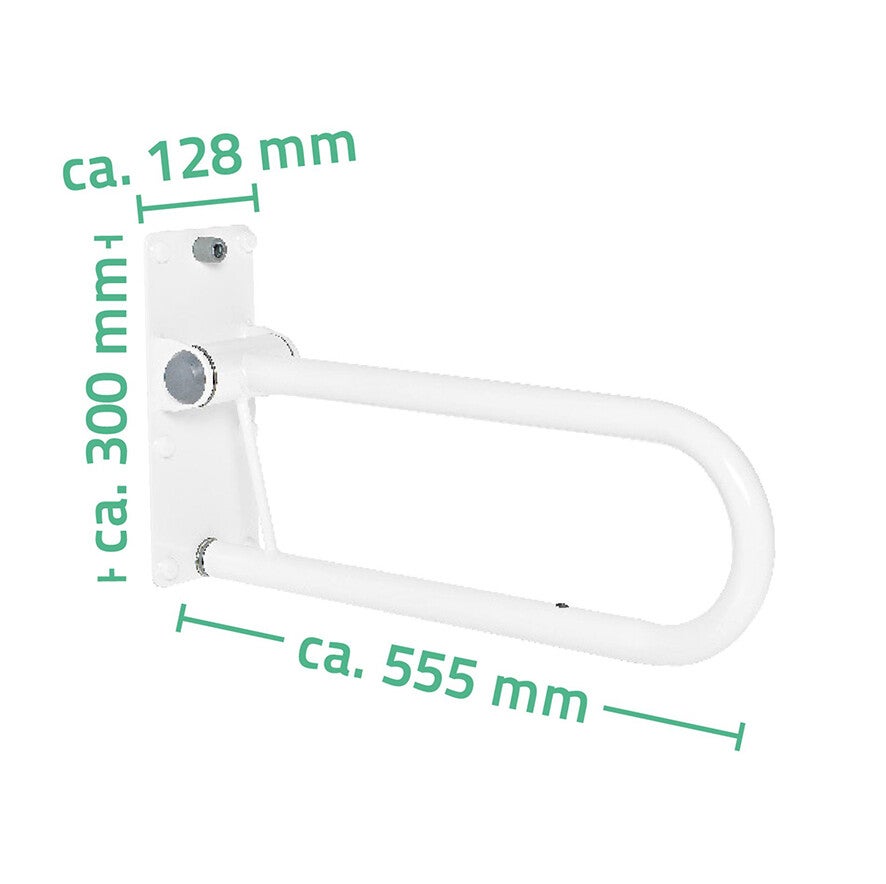 Met de opklapbare beugel kan er veilig en zelfstandig gebruik worden gemaakt van het toilet. Zitten en opstaan wordt zo een stuk gemakkelijker gemaakt. Installeer de beugel in de buurt van het toilet of de wastafel. De beugel is uitgerust met een valbeveiligingsmechanisme die ervoor zorgt dat de stang langzaam naar beneden schuift. Het draagvermogen is maximaal 100 kg. Wanneer deze niet in gebruik is kan de beugel verticaal opgeklapt worden.