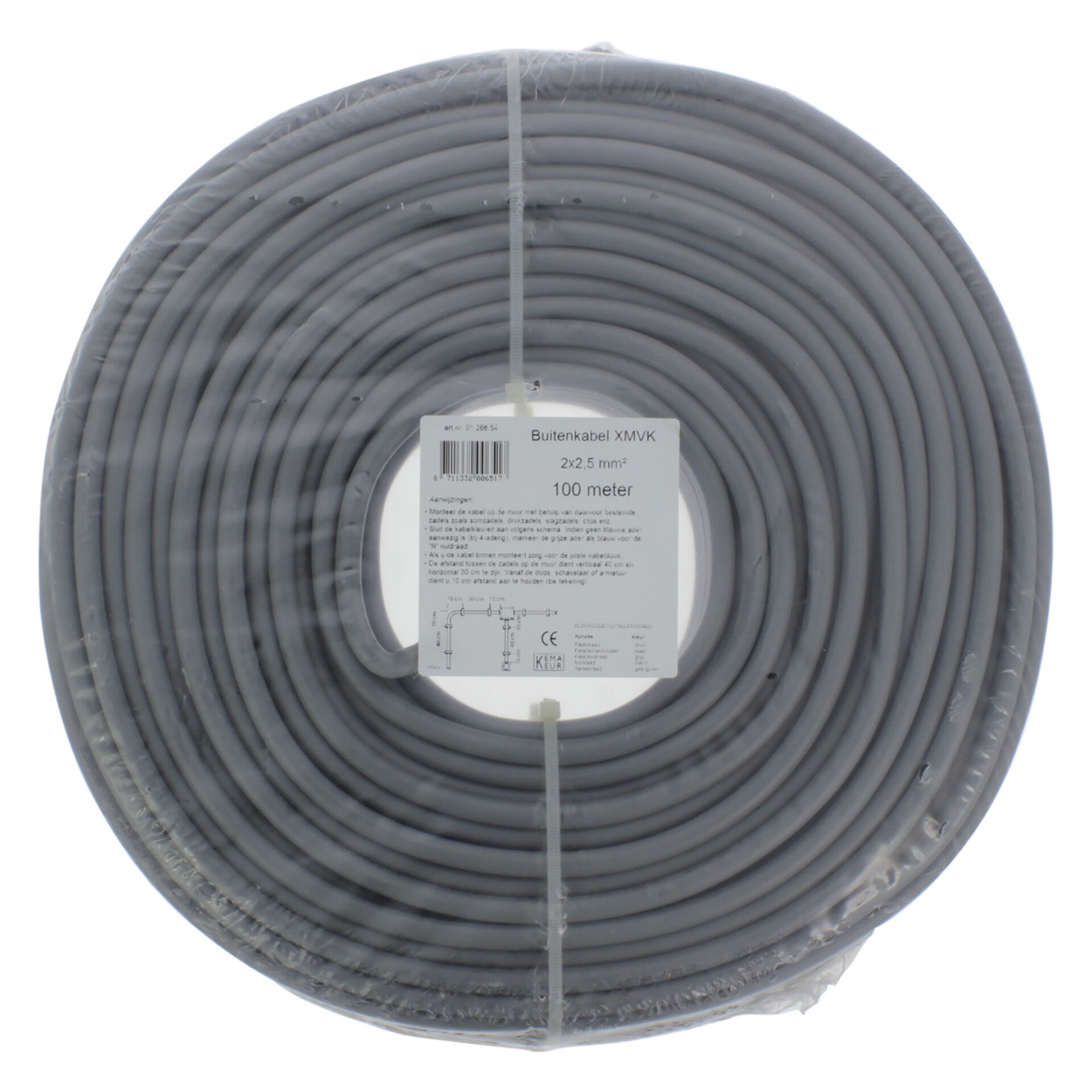 Buitenkabel xmvk. Voor buiten gebruik, echter alleen voor bovengronds gebruik. Brandklasse ECA. Gebruik de XMvK buitenkabel voor het aansluiten van tuinverlichting of buitenstopcontact. Een buitenkabel kan goed tegen zon en water en is daardoor uitermate geschikt voor het aanleggen van elektriciteit langs muren of in de tuin. De kabel is zeer flexibel en kan daardoor gemakkelijk een hoek om. De kabel is alleen geschikt voor lichte toepassingen en eenvoudige verbindingen, zoals een tuinlampje of ander klein elektrisch apparatuur. Het maximale vermogen van de aangesloten apparaten bedraagt 4600 Watt. Vanwege veiligheidsredenen is het advies om niet meerdere kabels in één buis te leggen.