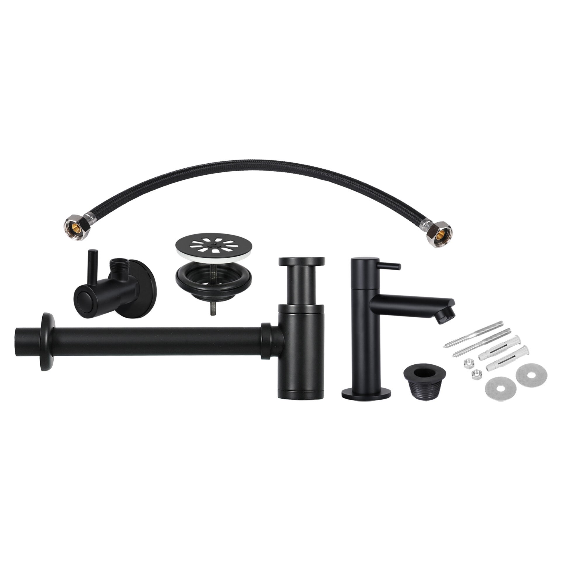 Met deze set installeer je een fontein bakje op je toilet of badkamer. Het is een complete set die alles bevat behalve het bakje zelf. De set is uitgevoerd in messing. Deze installatie set in de kleur mat chroom bestaat uit: hoekstopkraan 1/2 x 3/8 mat chroom, koudwaterkraan recht mat chroom, sifon manchet 32/40 zwart, sifon mat chroom, afvoerplug mat chroom, aansluitslang flexibel, bevestigingsset tbv fontein.