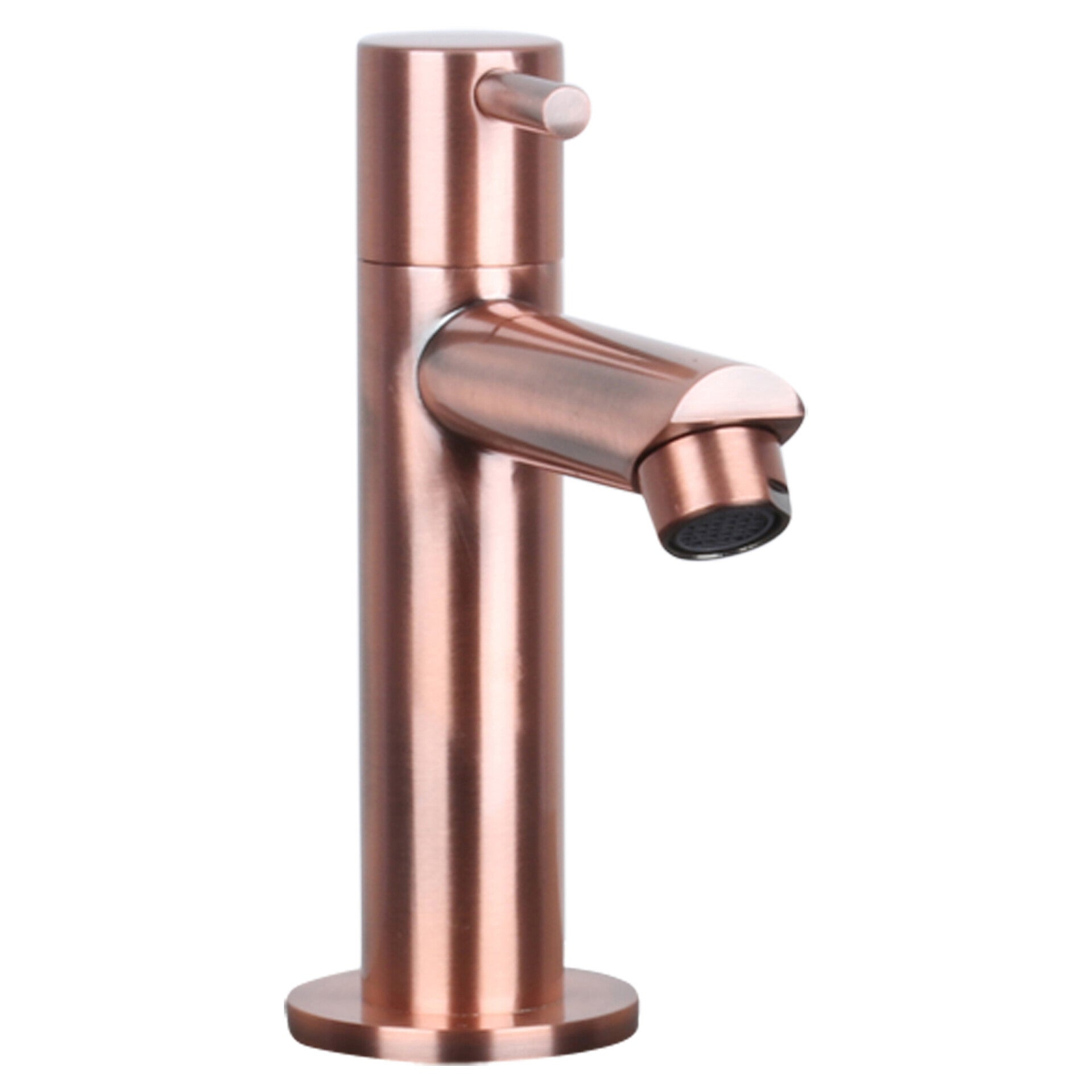 De fraaie design koudwaterkranen van Differnz komen in allerlei kleuren en variaties. De kranen zijn vervaardigd van messing en hebben keramische schijven. De waterhoeveelheid is met een eenvoudige hendel te bedienen. Deze variant heeft een recht aflopende kraan en is afgewerkt met een rood koper gekleurde finish. De water aansluitslang wordt niet meegeleverd.