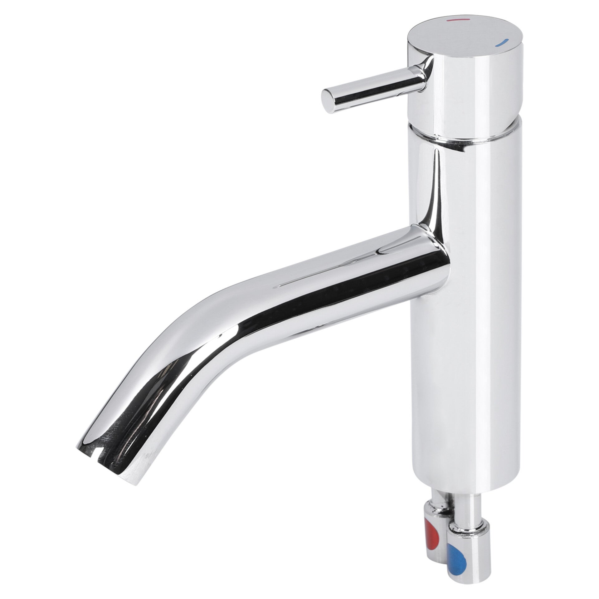Moderne wastafelkraan voor een stijlvolle afwerking van jouw sanitair. De Differnz kranen creëren een stijlvol en minimalistisch effect wat jouw sanitair (en badkamer) een moderne uitstraling geeft. Deze mengkraan van Differnz heeft een gebogen uitloop. Door het compacte formaat is de kraan ideaal als toiletfontein of wastafelkraan. De koud- en warmwaterkraan is soepel te regelen door middel van de hendel. Hiermee bedien jij de kraan en bepaal je nauwkeurig het juiste watervolume en -temperatuur. Deze Differnz kraan is wastafelkraan met lage uitloop, ideaal om snel je handen te wassen.