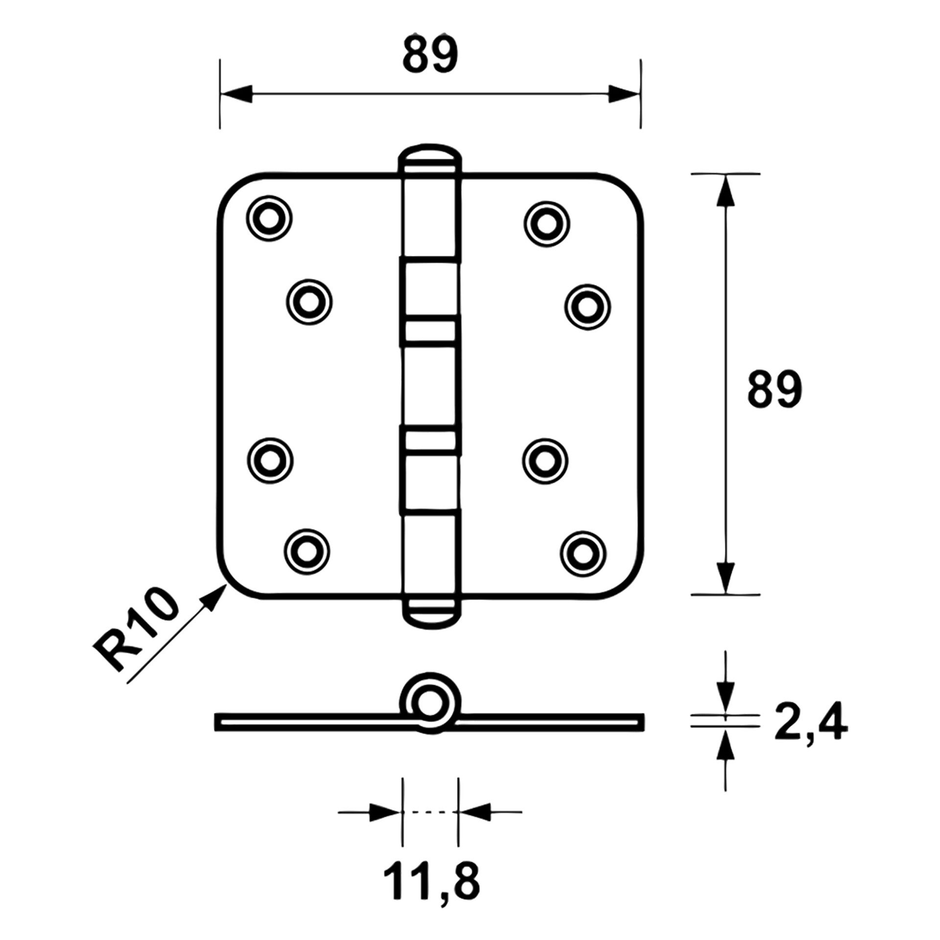 Axa kogelscharnier vierkant model - met ronde hoeken - verzinkt 89 x 89 mm