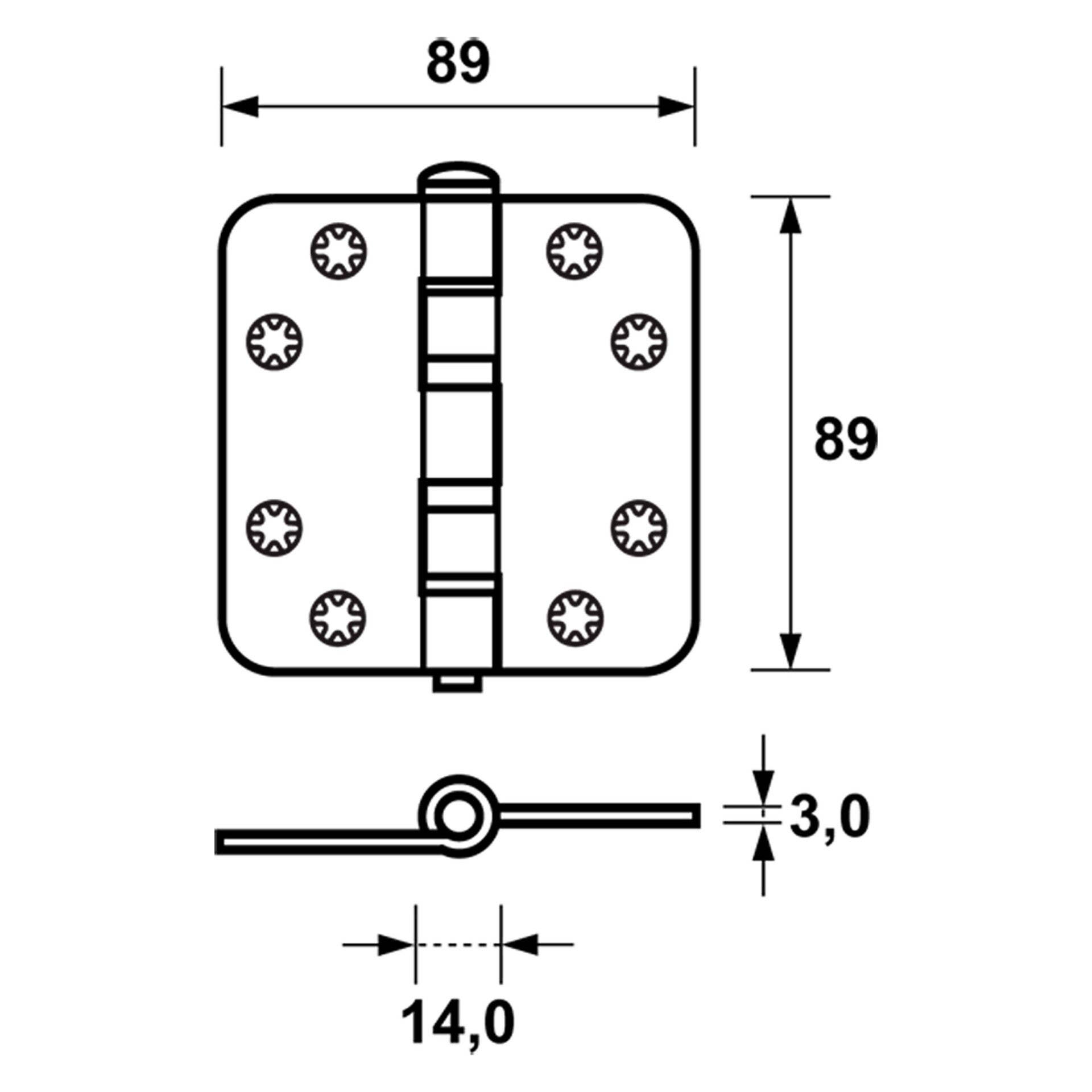 Axa Smart Easyfix kogelscharnier vierkant model - met ronde hoeken - verzinkt 89 x 89 x 3 mm