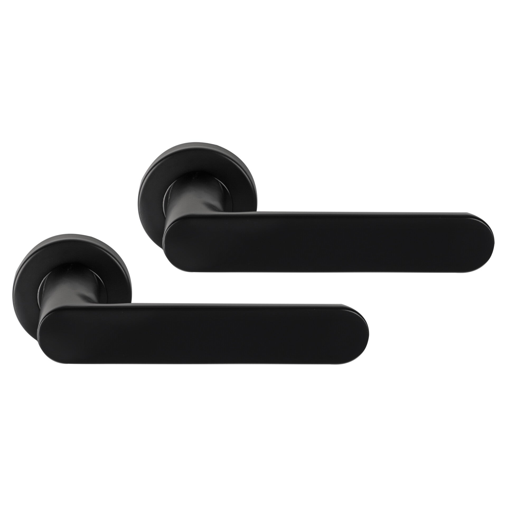 Ovaalvormige deurkruk op rond rozet uit de Differnz Eindhoven-serie, blind. In de kleur mat zwart. Per 2 verpakt in een complete set. Gemaakt van roestvrij staal, dus duurzaam, roestbestendig en eenvoudig in onderhoud. Bovendien gemakkelijk te monteren!