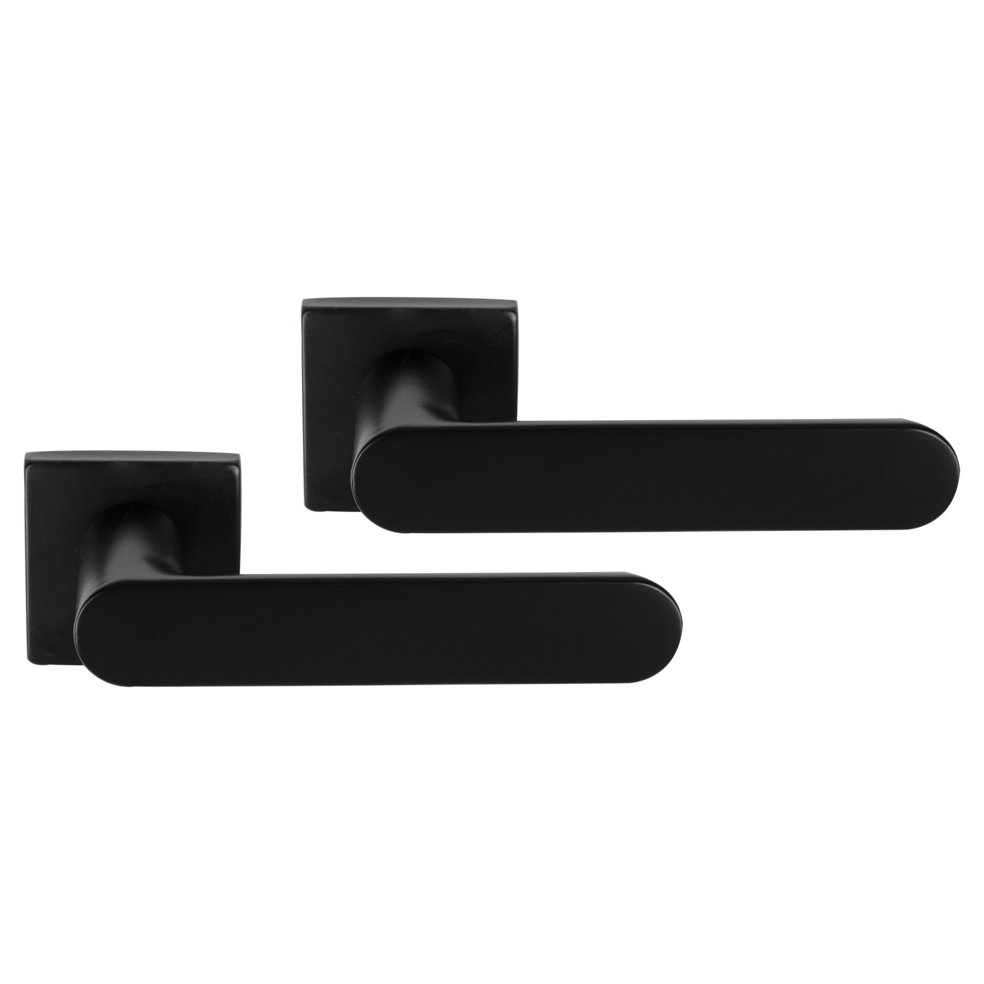 Ovaalvormige deurkruk op vierkant rozet uit de Differnz Eindhoven-serie, blind. In de kleur mat zwart. Per 2 verpakt in een complete set. Gemaakt van roestvrij staal, dus duurzaam, roestbestendig en eenvoudig in onderhoud. Bovendien gemakkelijk te monteren!