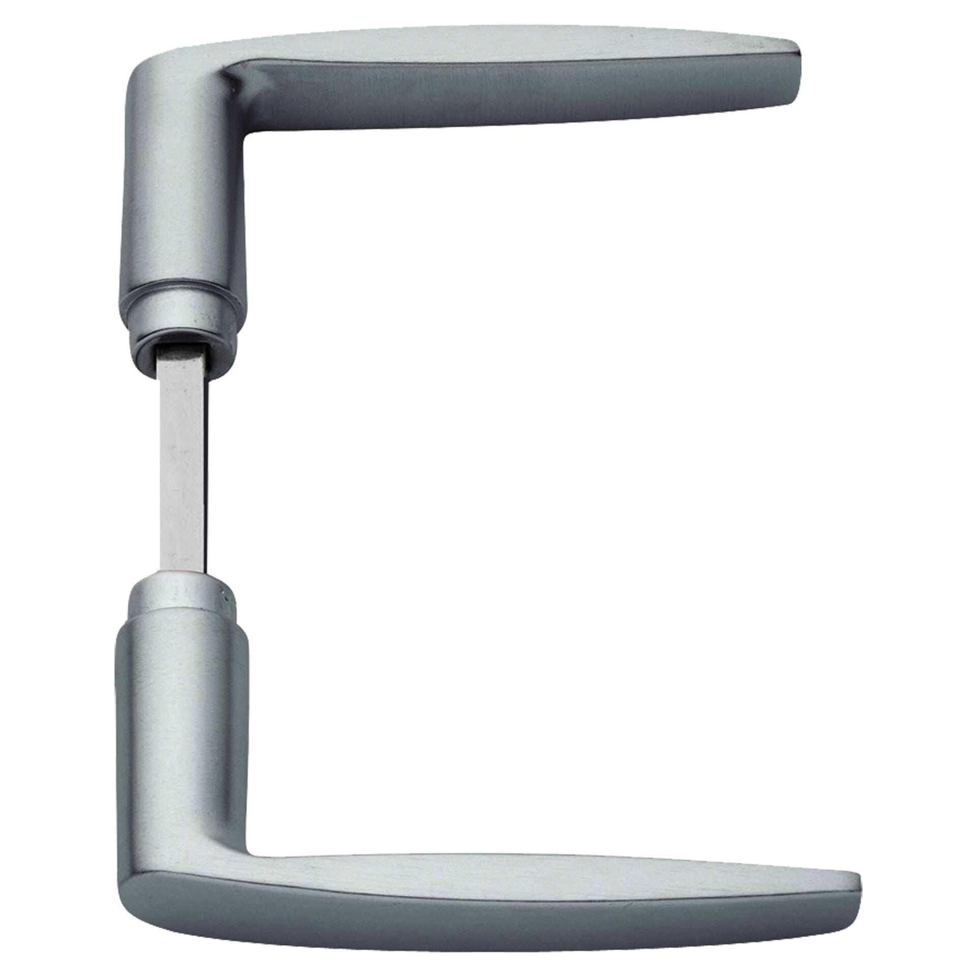 Aluminium geanodiseerd. Wordt geleverd met universele krukstift. Toepasbaar op deuren variërend van 38 tot 54 mm.