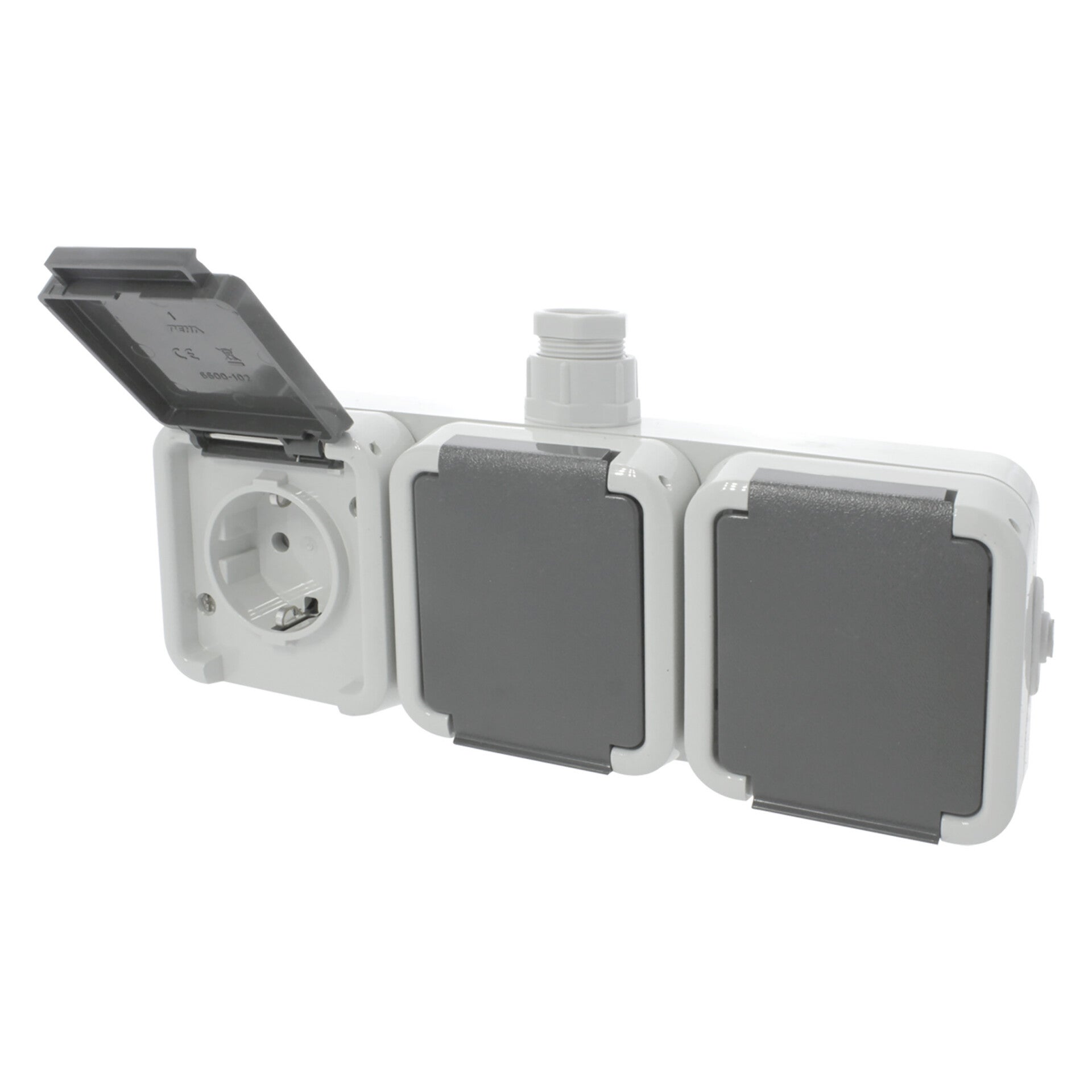 Peha contactdoos opbouw - 3-voudig - randaarde - met wartel M20 grijs