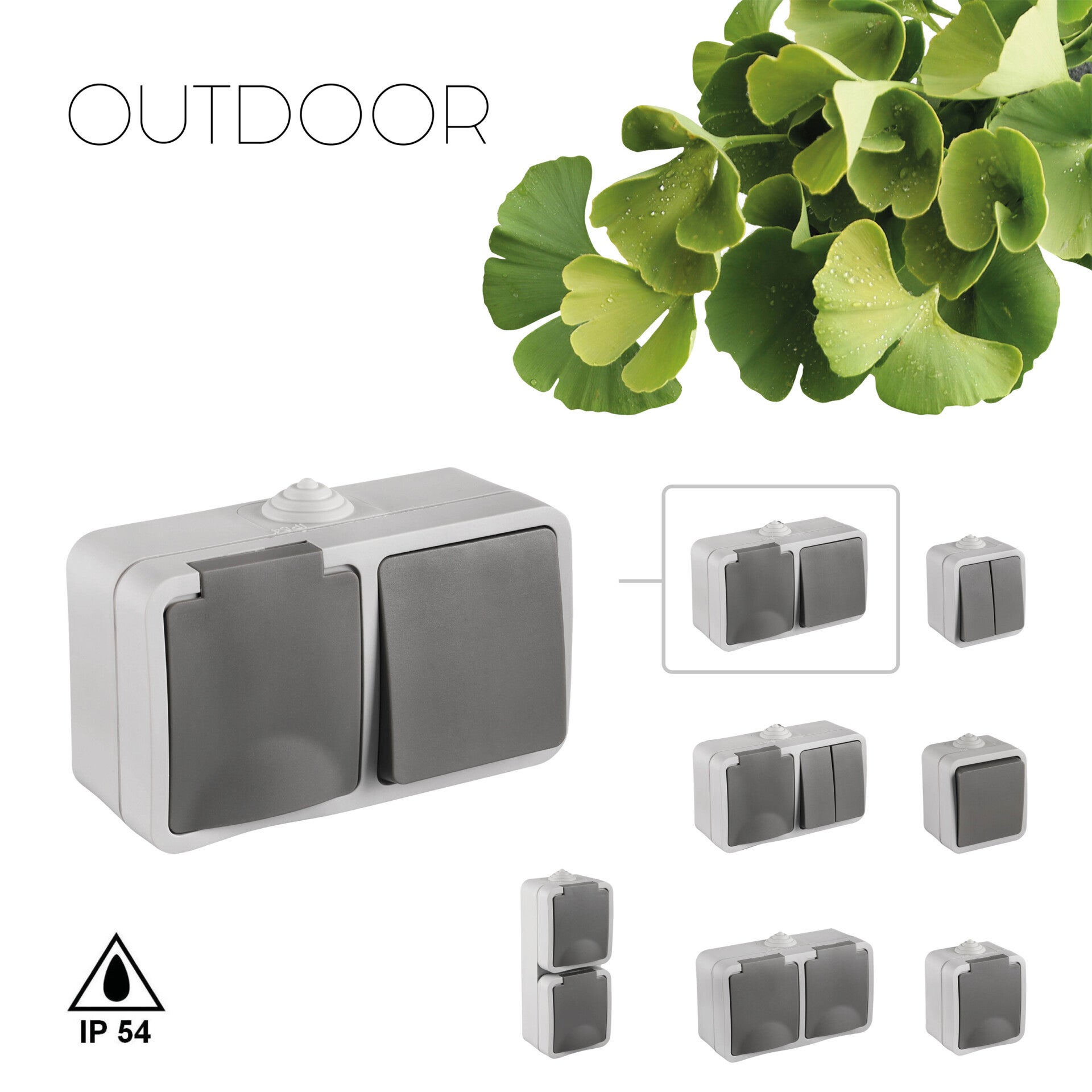 Q-Link combinatie opbouw - wissel - met randaarde - spatwaterdicht IP54 grijs