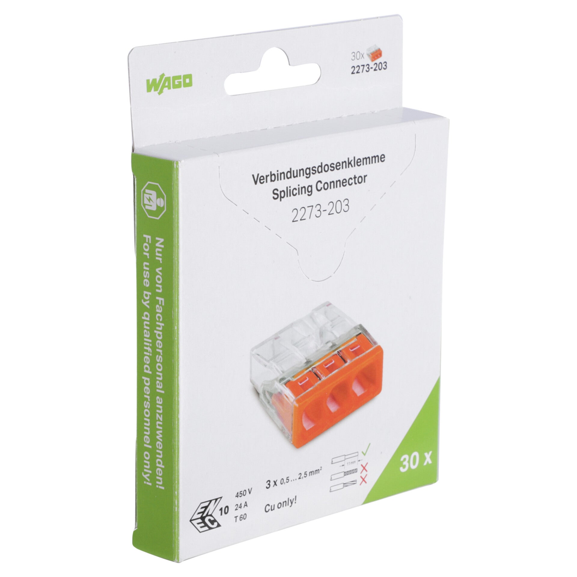 "Comfortabele bedrading dankzij zeer compacte bouwvorm. Maximaal 8 massieve geleiders insteekbaar. Doorsnedebereik: 0,5 … 2,5 mm². Doorsneden individueel combineerbaar. Klemmen van massieve koperen geleiders (""e"") met behulp van steekklemaansluiting."