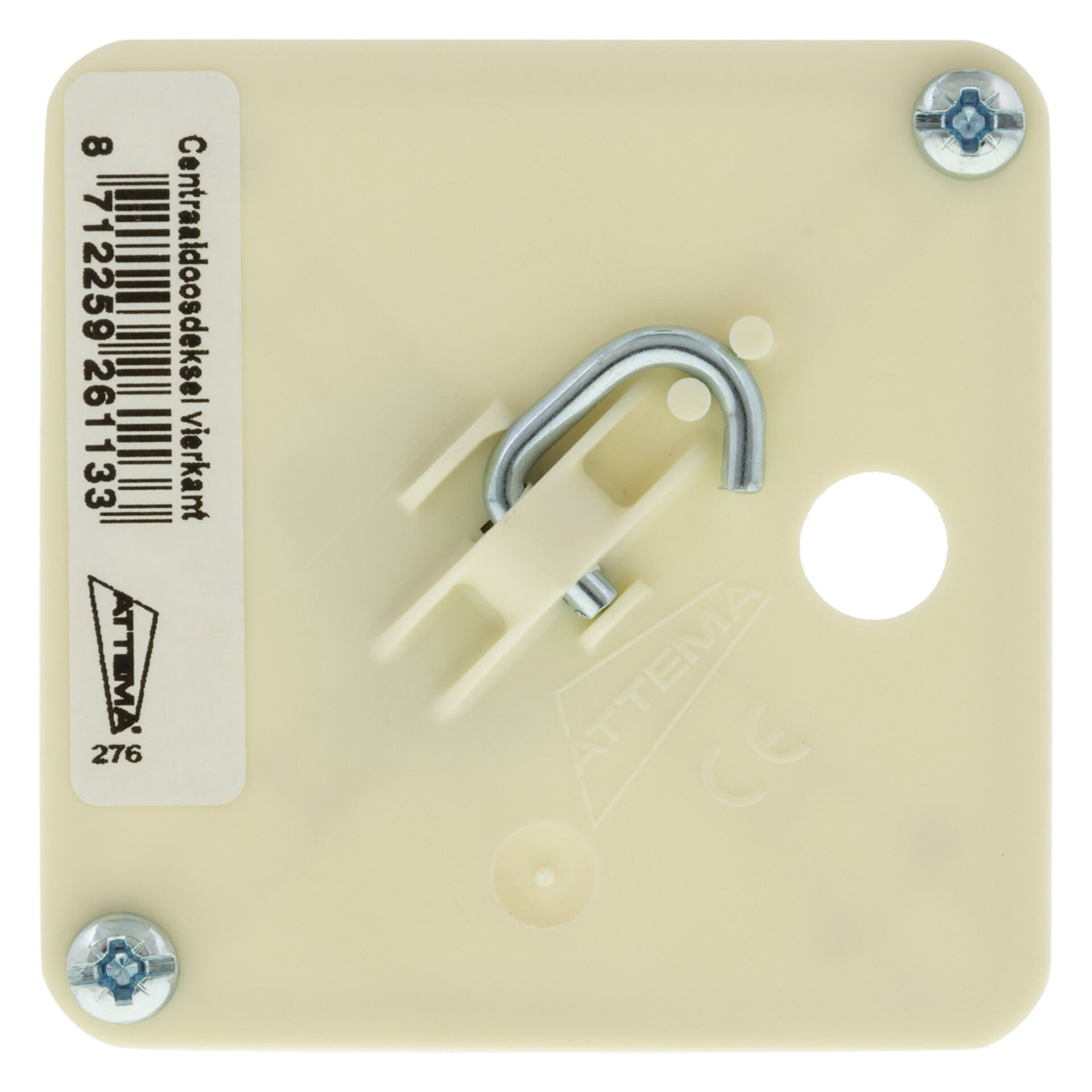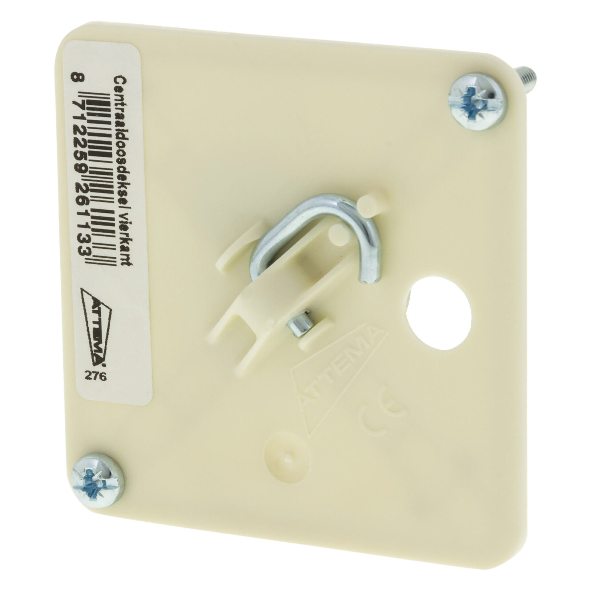 centraaldoosdeksel met haak vierkant crème 72 x 20 x 72 mm