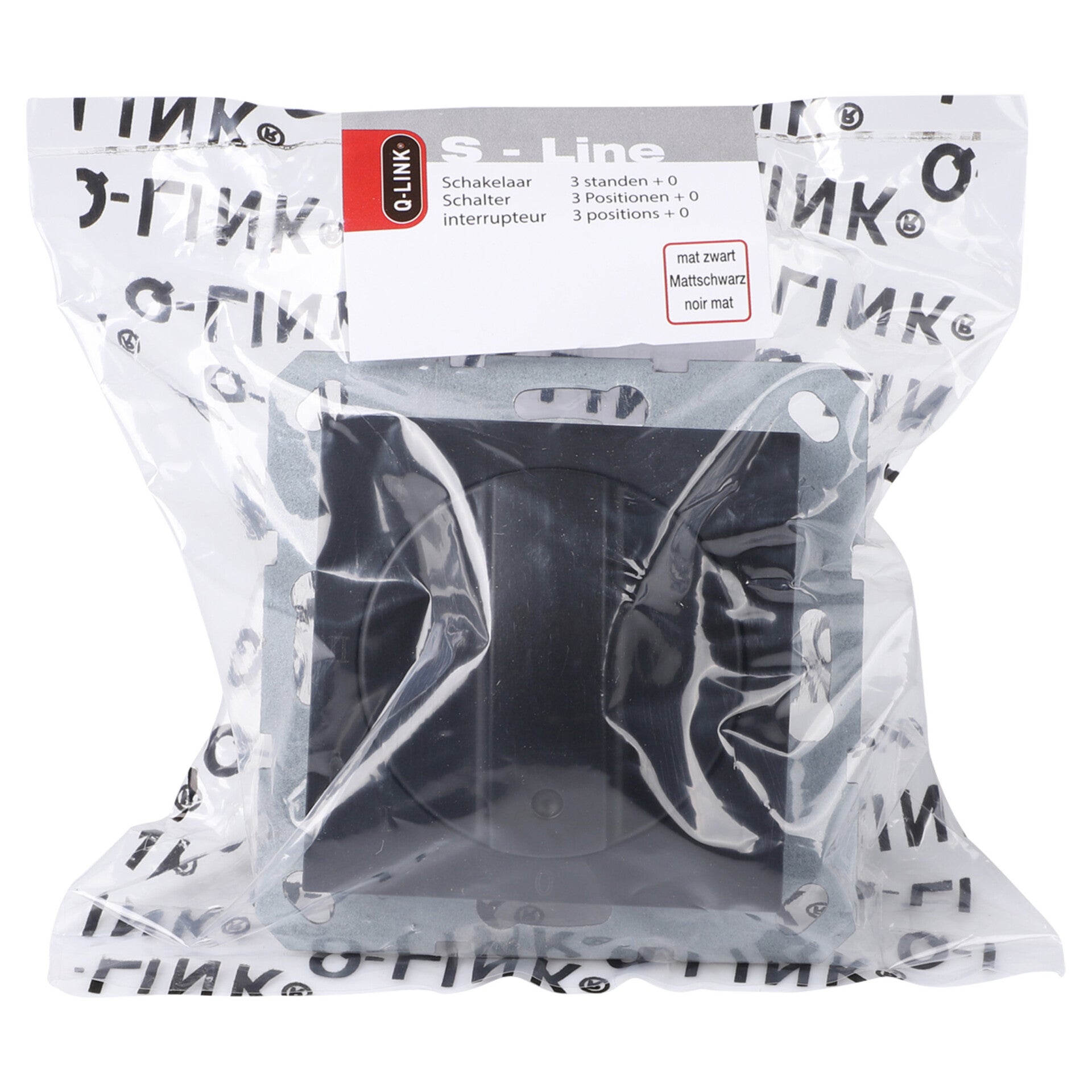 Q-Link S-Line schakelaar inbouw - 3-standen - met 0-stand mat zwart