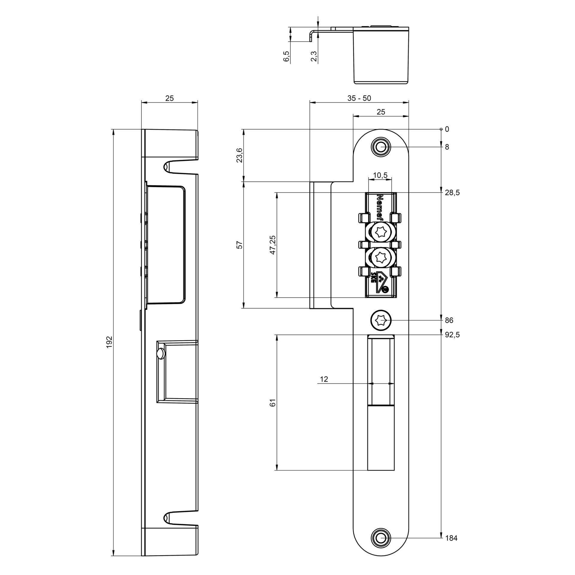 Geschikt voor houten kozijnen in de woning- en utiliteitsbouw. Massief zamac behuizing met verstelbare aanslag voor dagschoot en verstelbare gebogen sluitlip . Voor links- en rechtsdraaiende deuren. Geschikt voor sloten met blokschoot. Massief zamac sluitkom. RVS afgeronde sluitplaat. Dagschootaanslag verstelbaar. Sluitplaat traploos verstelbaar. Geschikt voor ondiepe kozijnen.