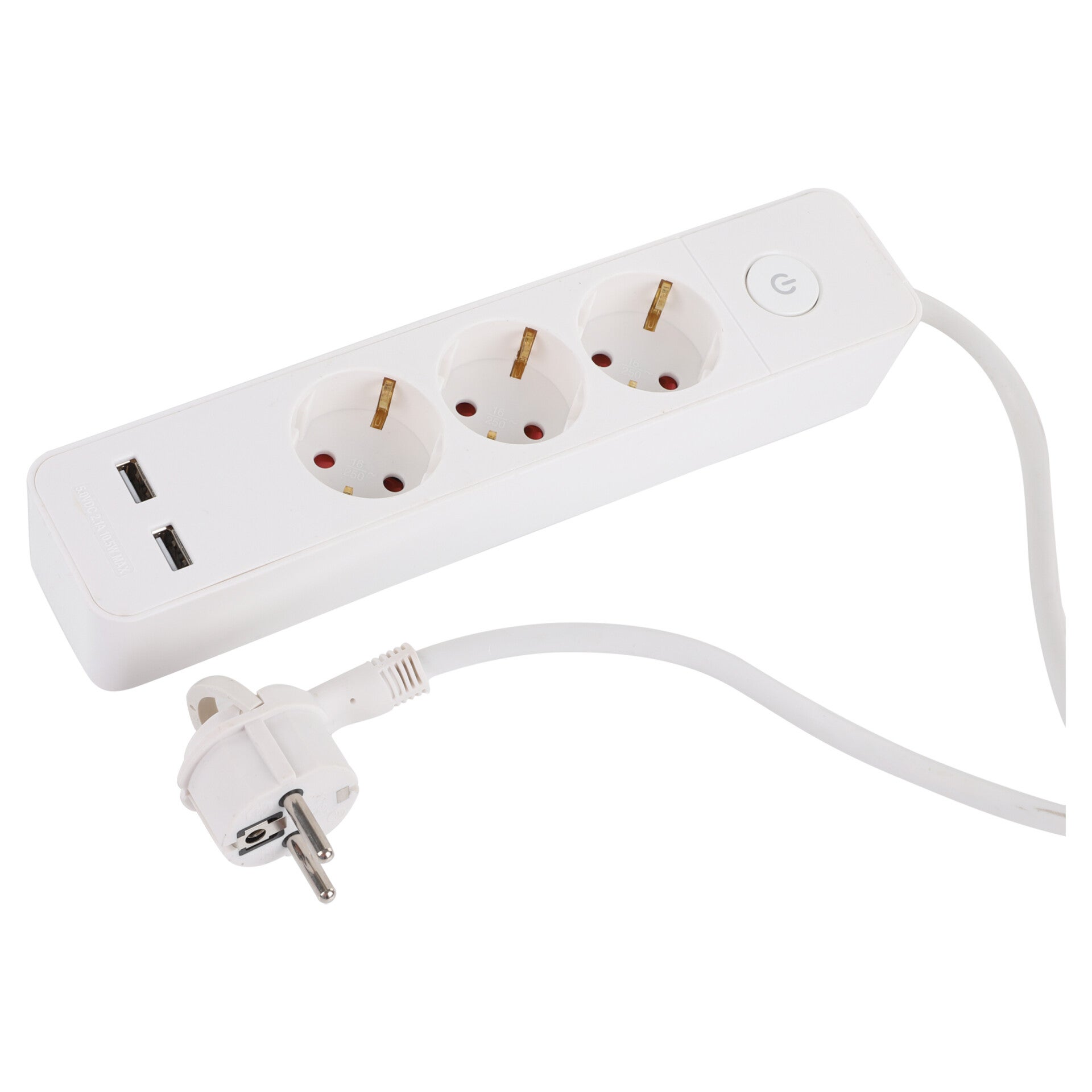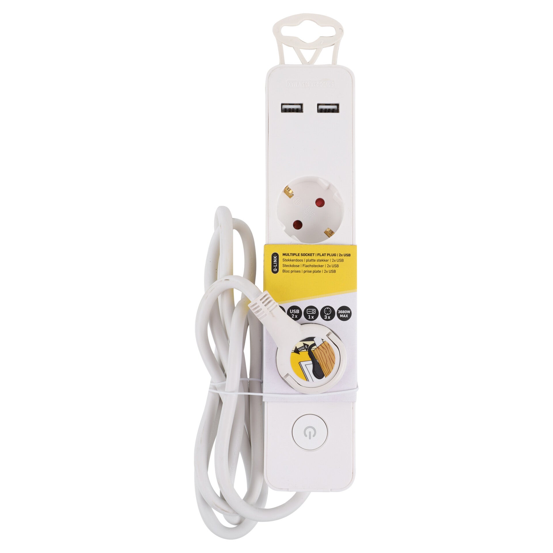 Q-Link stekkerdoos 3-voudig - met schakelaar - plat - USB A/A - PVC wit 3 x 1.5 mm², 1.5 m