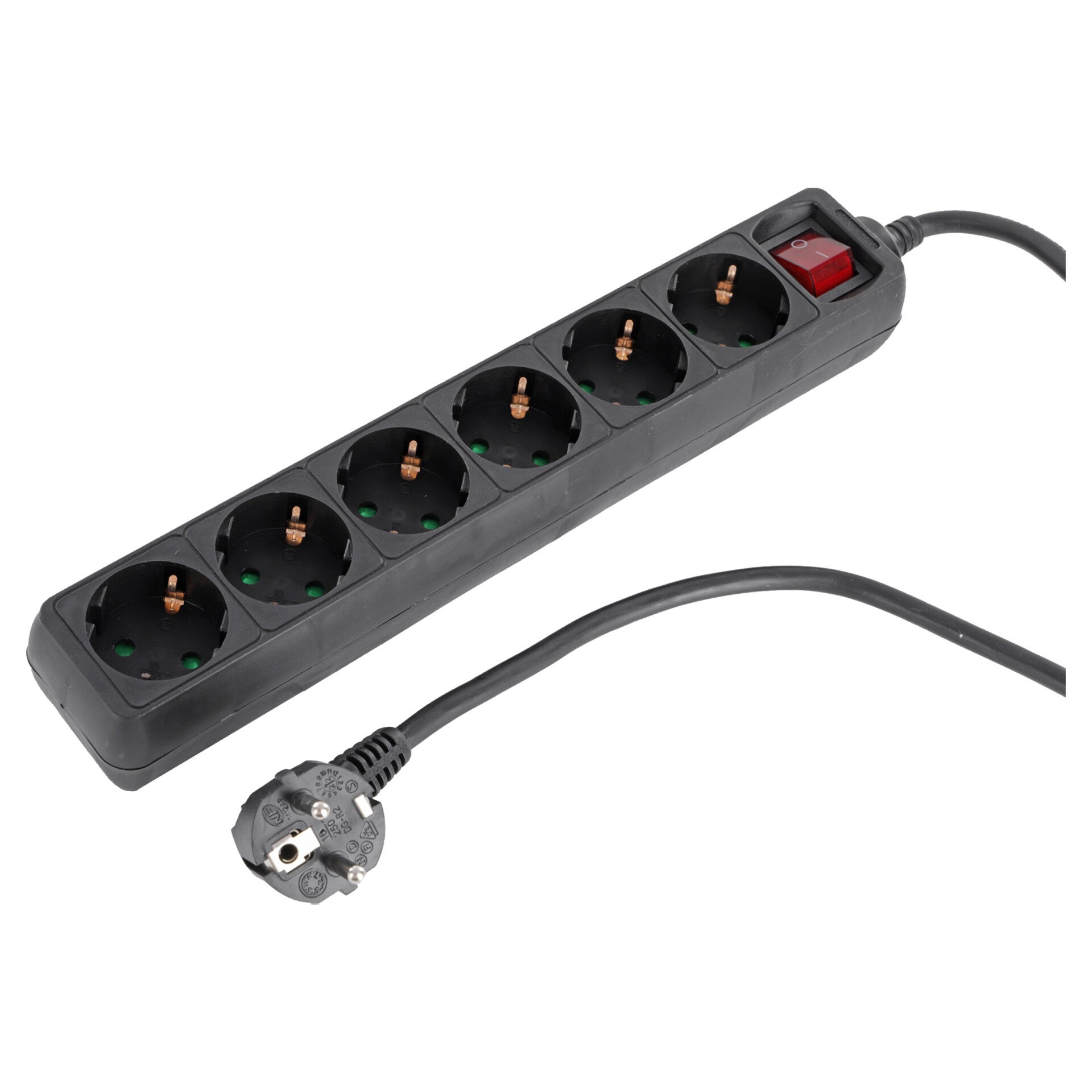 Q-Link stekkerdoos 6-voudig - randaarde - met schakelaar zwart 3 x 1.5 mm², 1.5 m