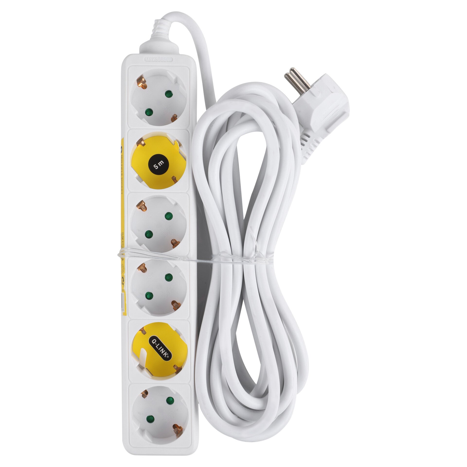 Q-Link stekkerdoos 6-voudig - randaarde wit 3 x 1.5 mm², 5 m