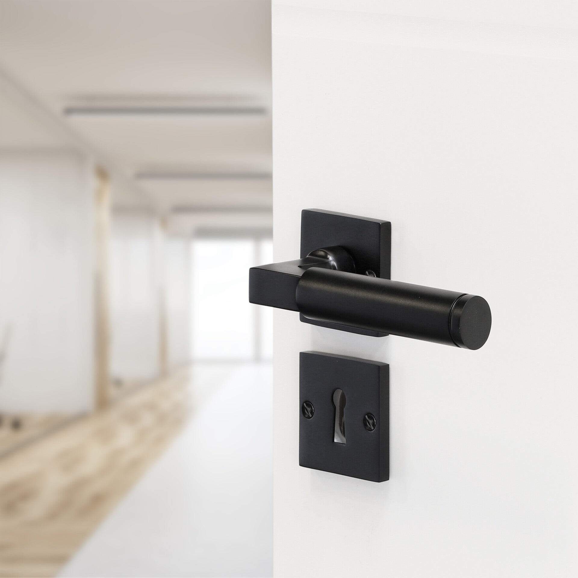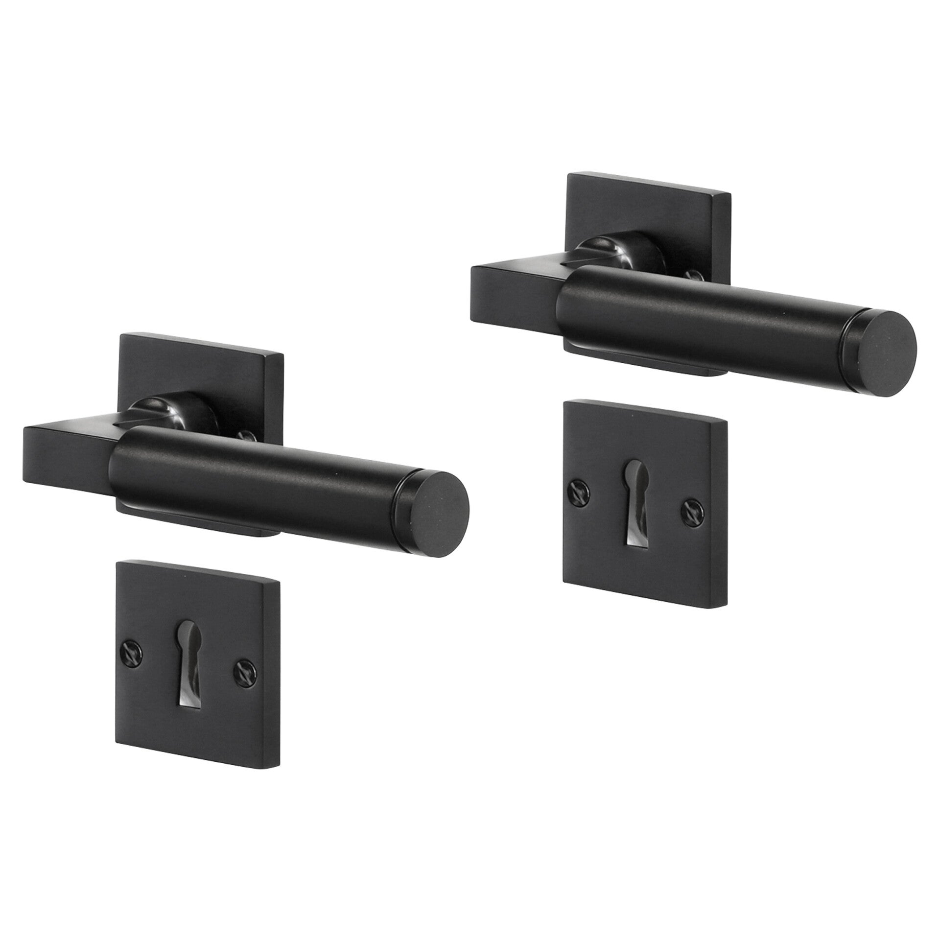 Impresso Aston deurkruk met vierkant rozet schroef en sleutelrozet zwart