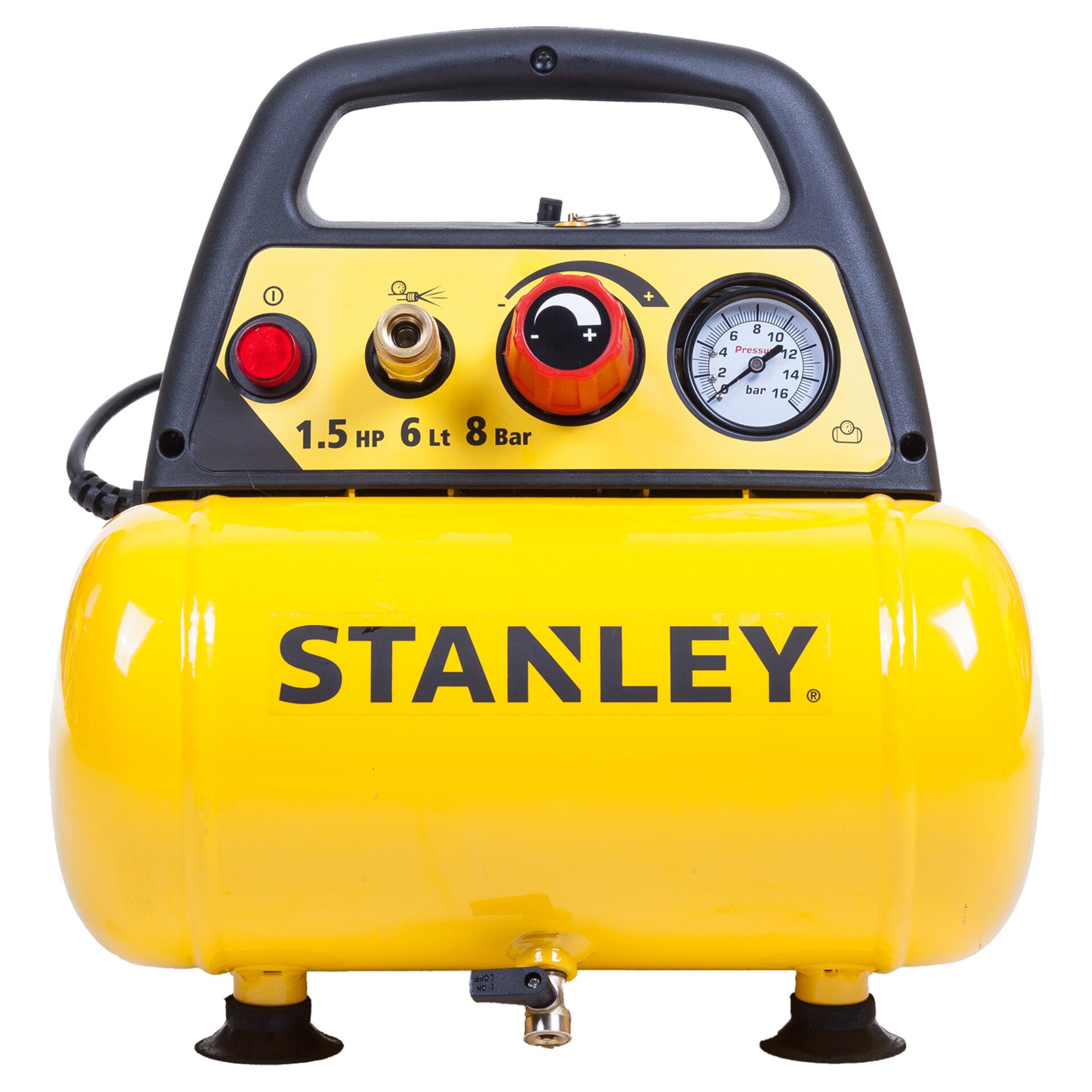 Stanley luchtcompressor 8 bar - 6L - olievrij - DN200/8/6 geel/zwart