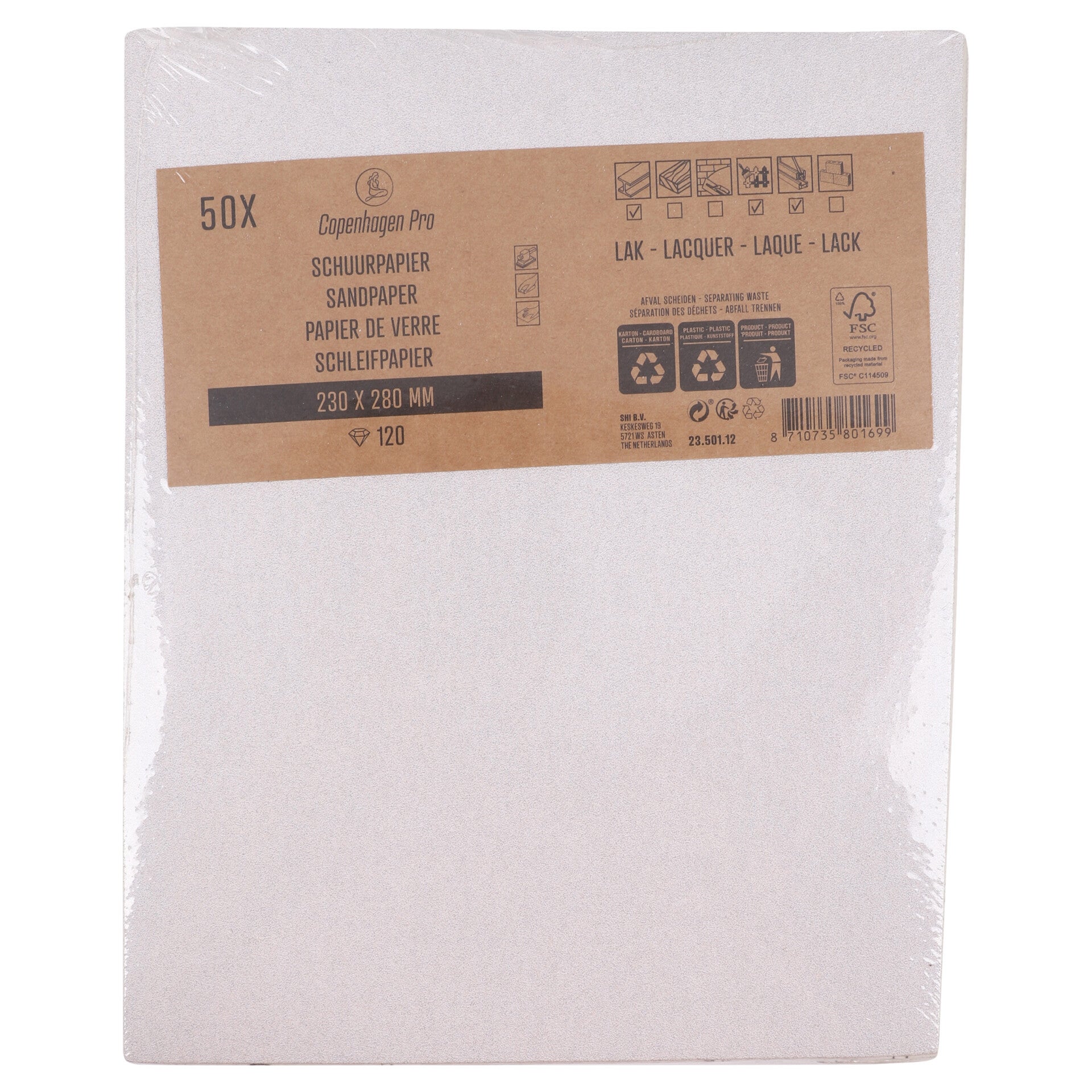 Schuurpapier lak. Het schuurpapier is met name geschikt voor het handmatig of machinaal opschuren van verf- en laklagen op hout, metaal of kunststof.